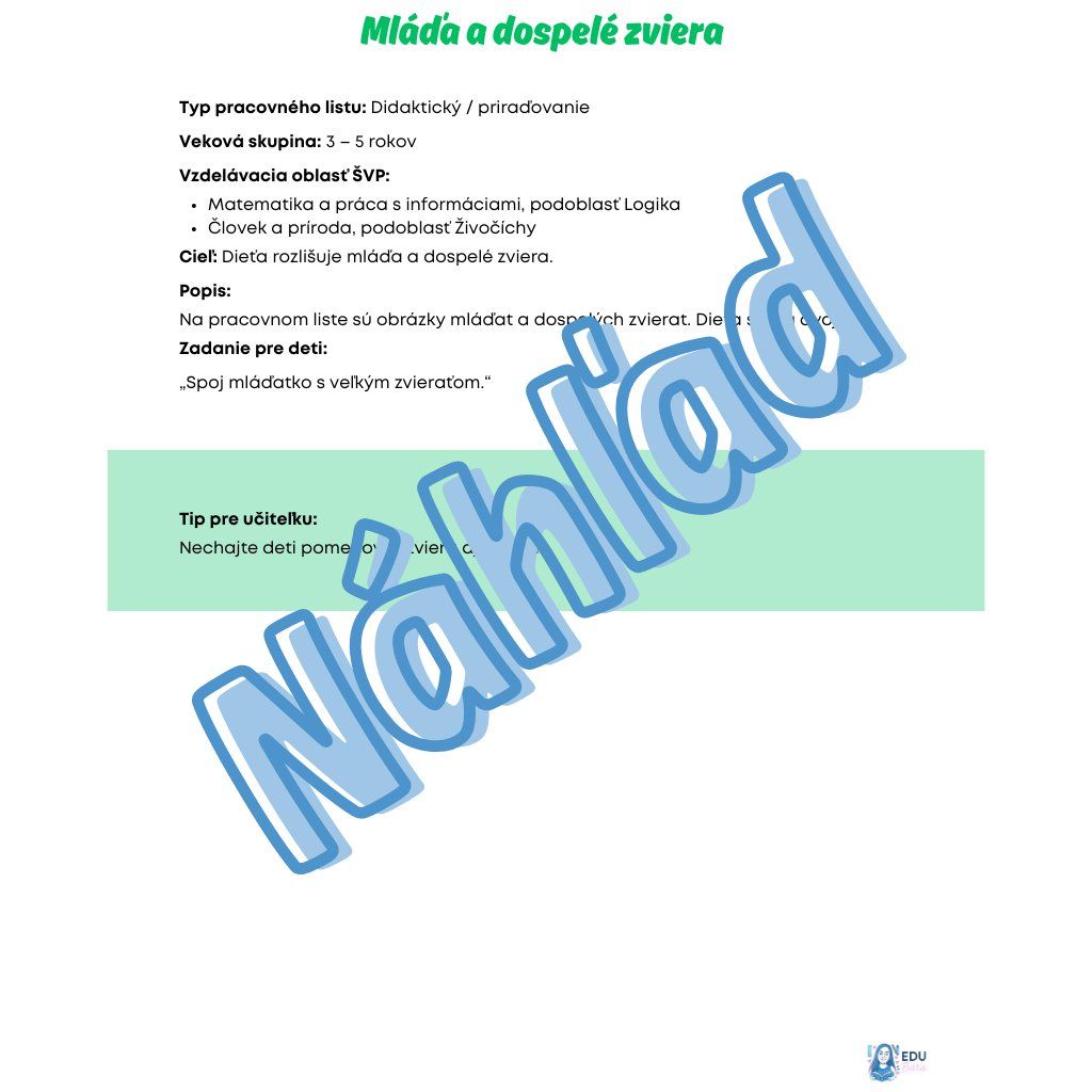Kompletný celodenný vzdelávací program zameraný na pochopenie životného cyklu zvierat, ich rastu a postupného vývoja. Materiál hravou formou vysvetľuje časovú postupnosť od vajíčka až po dospelého jedinca, pričom kombinuje kognitívne úlohy s pohybovými aktivitami a tvorivou prácou