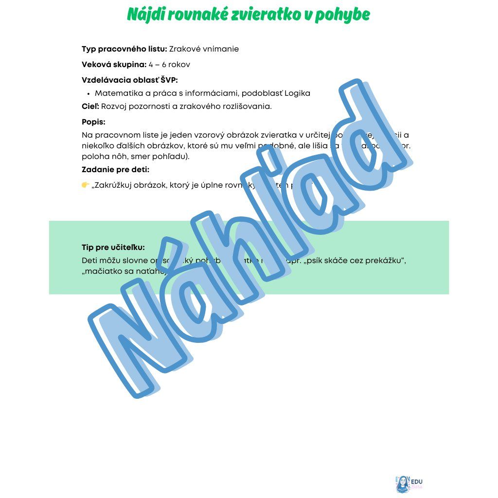 Súbor didaktických pracovných listov na priraďovanie činností a zrakové rozlišovanie zvierat v pohybe