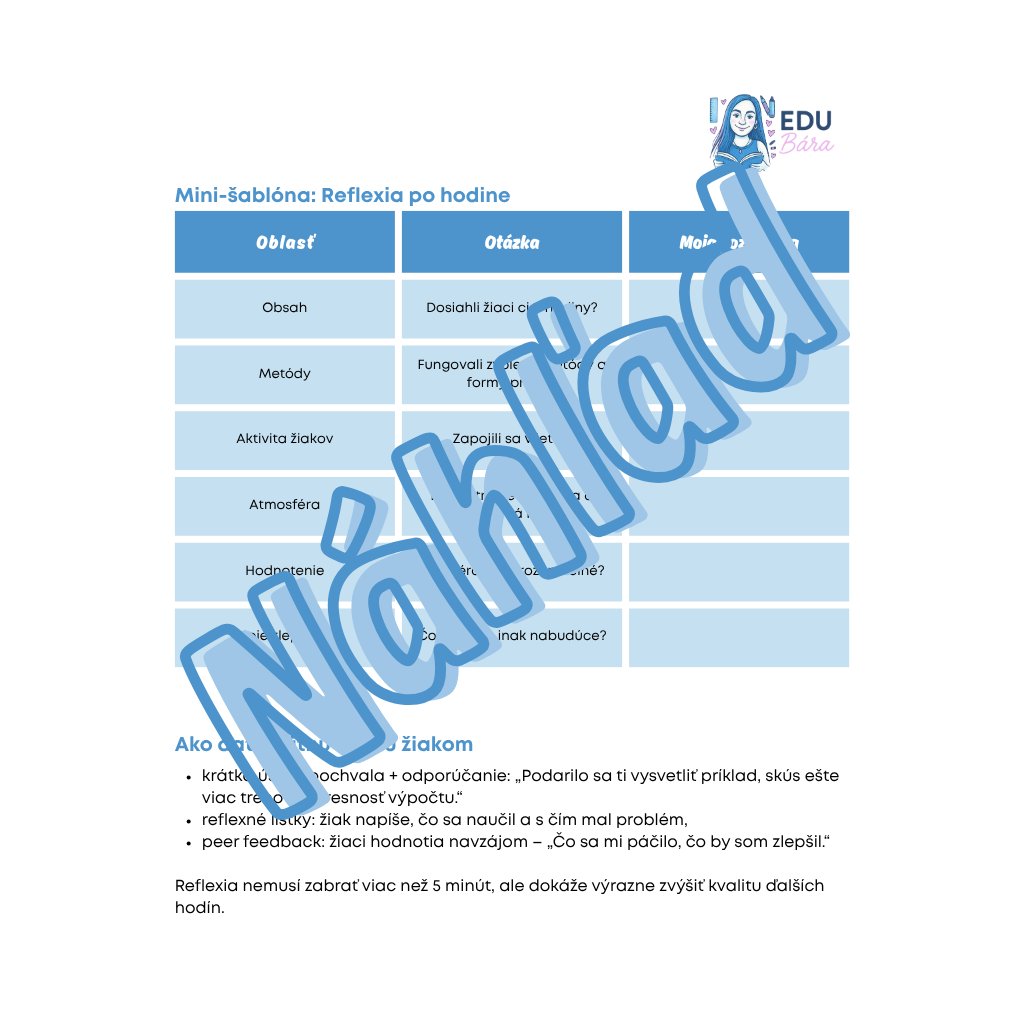 ✅ Checklisty a reflexné otázky, ktoré Ti pomôžu pripraviť hodinu rýchlo a kvalitne,