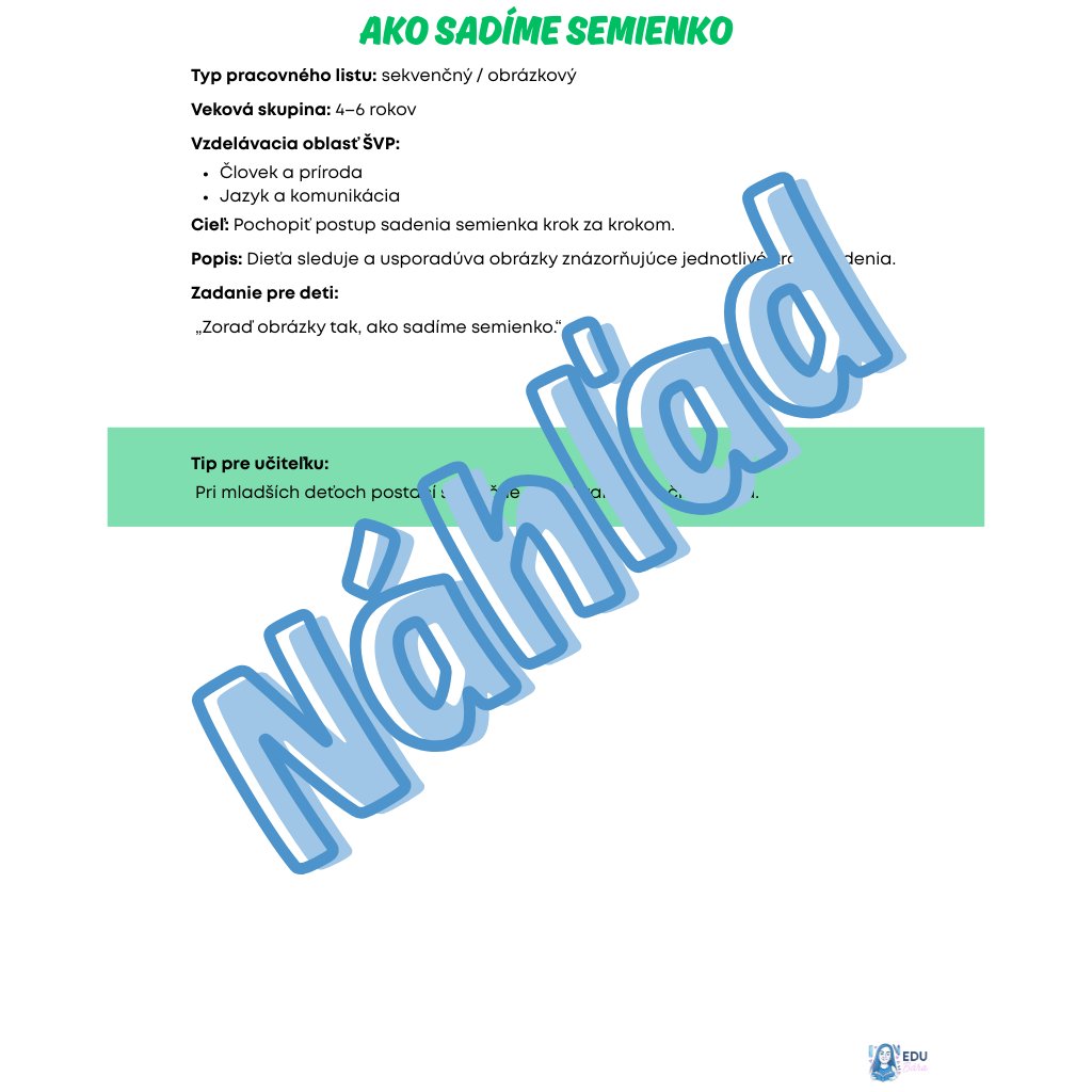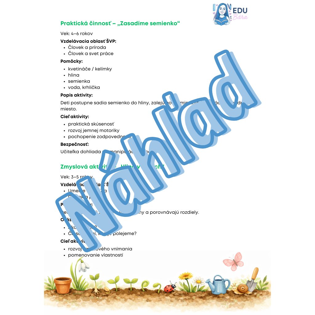Kompletný celodenný vzdelávací program zameraný na praktické zručnosti pri sadení semienok a budovanie zodpovednosti za živú prírodu