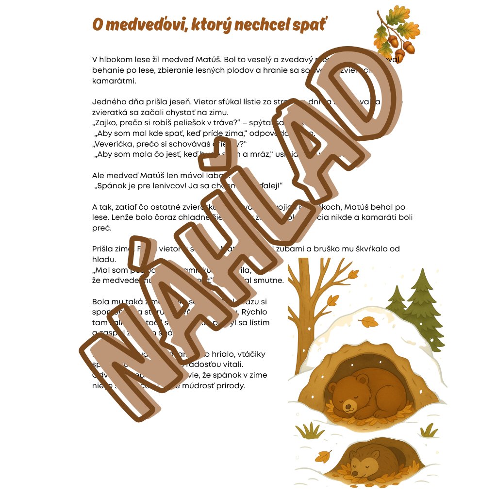 Tematický týždeň „Zvieratá sa chystajú na zimu“ prináša hotové aktivity, príbehy, pracovné listy a hry, ktoré deťom hravo vysvetlia, čo robia medvede, vtáky či veveričky, keď prichádza chlad.