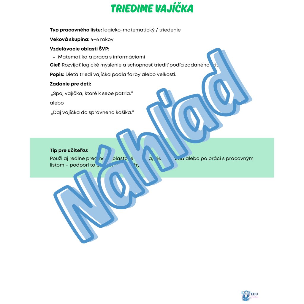 Kreatívne podklady: Sadu autorských pracovných listov na triedenie, poznávanie a tvorenie