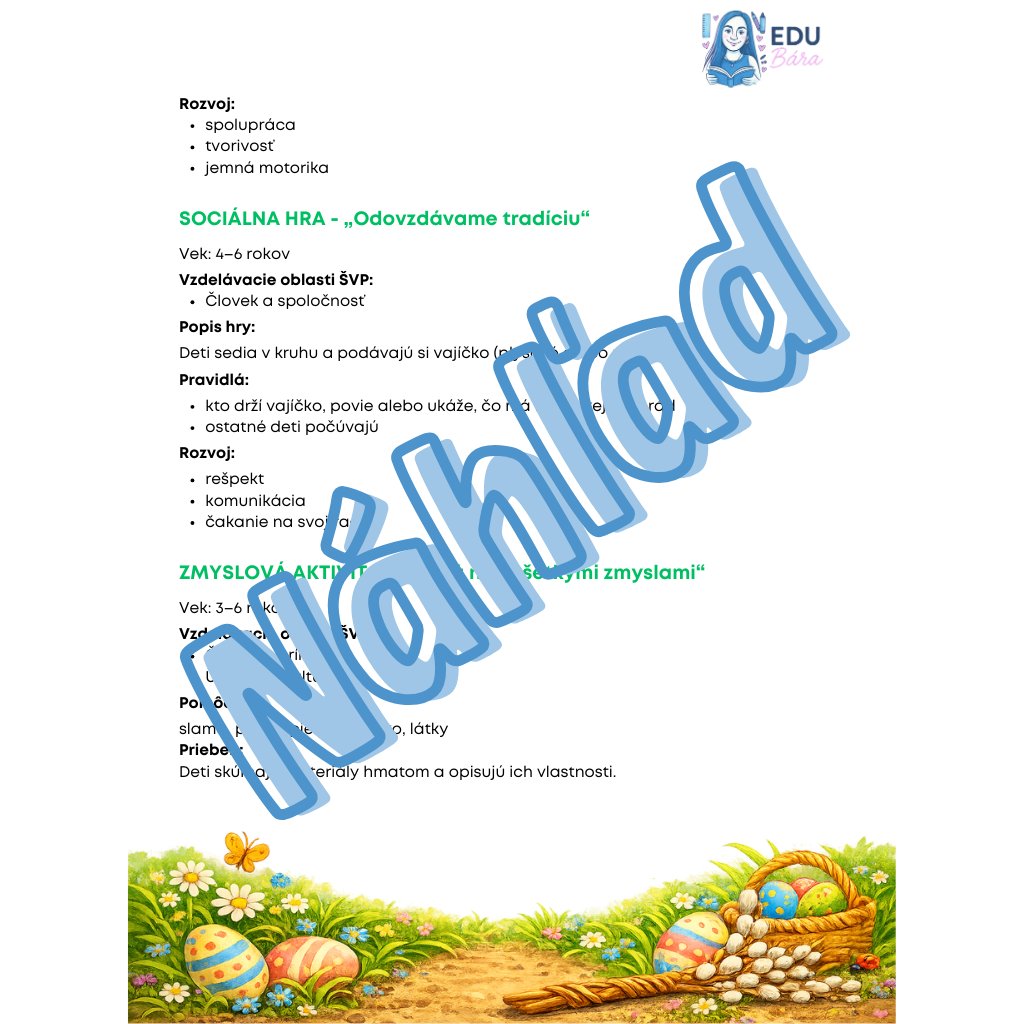 Kompletný celodenný vzdelávací program zameraný na spoznávanie veľkonočných tradícií a zvykov ako dôležitej súčasti našej kultúry